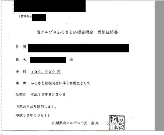 You can use the “One Stop Special Exemption” instead of filing a Tax Return. When you pay for your gift the prefecture will send you a thank you letter via post in addition to proof of your donation. Ensure to keep this in a safe place as it might be required in the future. In addition to this, you will also receive a form that will allow you to request the “One Stop Special Exemption”. Basically, if you tick yes to this and send the relevant documents, the prefecture will automatically declare your donation to your local tax authority so you don’t need to declare it yourself. The relevant documents are: (1) a scan of your My Number Card/Notification Card (2) a scan of an authorised document (passport, resident card, insurance card etc.), you will see in your form what documents are allowed so make sure to read that to avoid having to send documents back and forth. To note that if you have to file a Tax Return for other purposes (which was my case), you WILL need to declare your gift in order to get your tax deduction. This is when your proof of donation document is required. If you declare your donation in your Tax Return you will need to post the original certificate of receipt for your donation (make sure to take a scan before sending the original). I have scanned below the receipt that I got so you can see what one looks like: